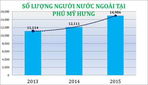 Lượng người nước ngoài tại Phú Mỹ Hưng trong các năm từ 2013 đến 2015 tăng từ 9% lên gần 35%.