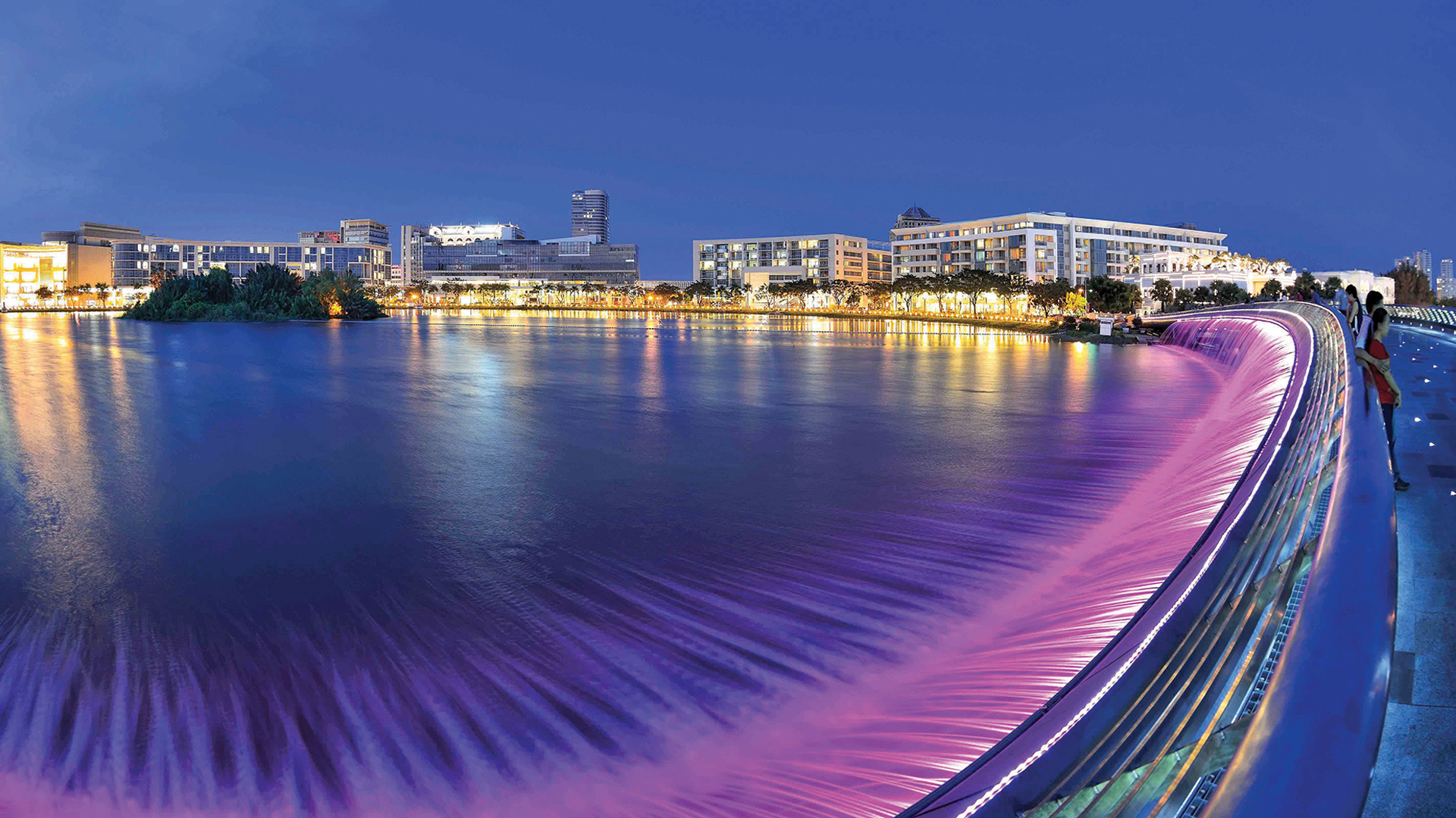 Phía dưới, dọc theo hồ Bán Nguyệt, rất đông bạn trẻ tụ tập nói cười, tạo dáng chụp hình. Với thiết kế cong hình mặt trăng và những bóng đèn led liên tục đổi màu, cầu Ánh Sao vắt ngang Hồ Bán Nguyệt về đêm như dải sao nào đó trong ngân hà. Nơi đây đã trở thành điểm tham quan, nghỉ mát không chỉ của người Sài Gòn, mà còn thu hút đông đảo khách du lịch. Thật không ngoa khi ví von PMH như “Singapore và Dubai”.