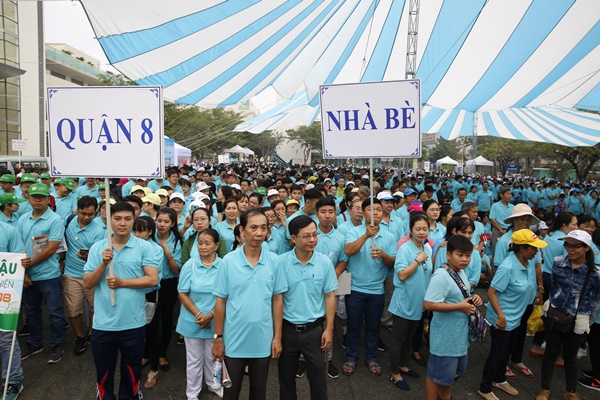 Từ sáng sớm hàng chục ngàn người đã đổ về khu đô thị Phú Mỹ Hưng, tham gia quyên góp và đi bộ đồng hành ủng hộ người nghèo.